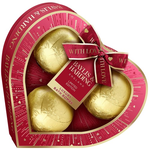 Baylis & Harding Midnight Cherry Luxury Bath Bombs Heart Trio Gift Set