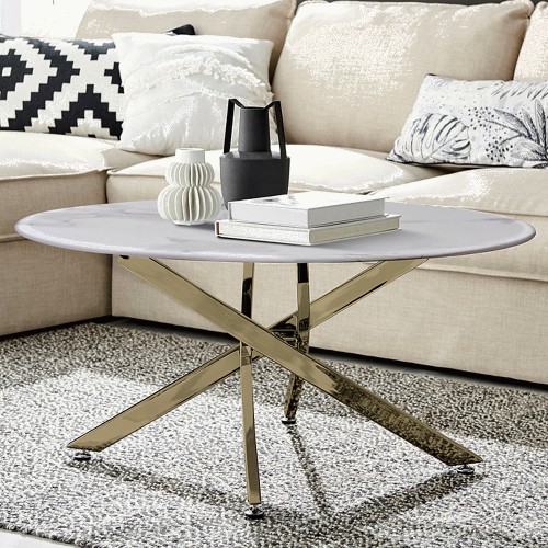Arona Round Marble Effect Glass Coffee Table with Black Legs