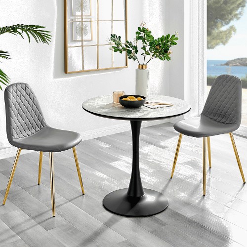 Elissa Solara Marble Effect 2 Seater Round Dining Set White Grey and Gold