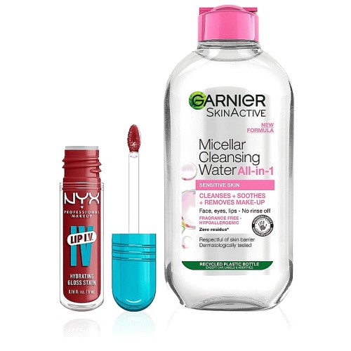 NYX Lip IV Drippin in Rose Lip Stain & Garnier Micellar Water Duo Bundle