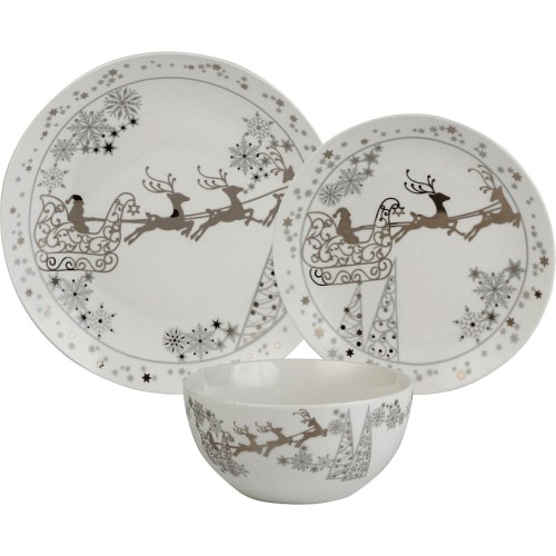 Christmas Santa Sleigh Snow Scene Dinner Set 12 Piece 12pce