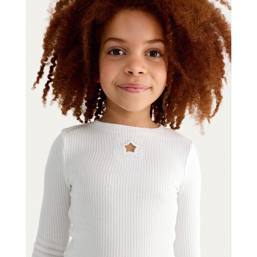 F&F Girls Ribbed Star Cut Out Top in Cream