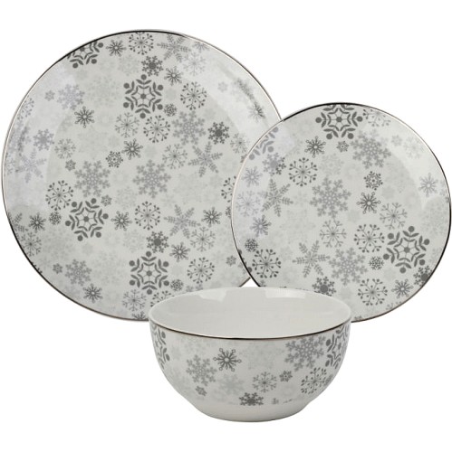 Grey & White Snowflake Dinner Set 12 Piece 12pce