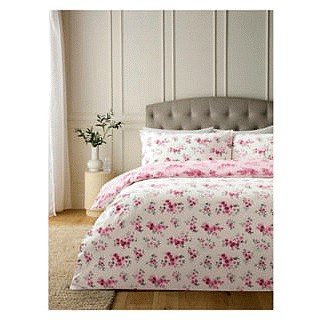 Pink Inky Floral Brushed Cotton Duvet Set Single