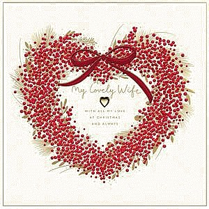 To My Lovely Wife at Christmas Festive Heart Wreath Design Greeting Card