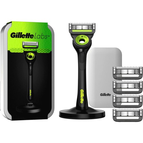 Labs Razor with Exfoliating Bar Magnetic Stand Travel Case & 4 Blades Pack