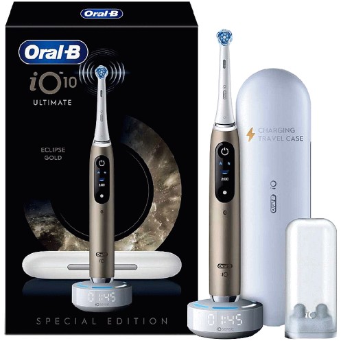 iO10 Electric Toothbrush Eclipse Gold 1 Brush Head 1 Charging Travel Case 1 Refill Holder