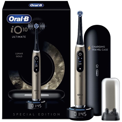 iO10 Electric Toothbrush Lunar Gold 1 Brush Head 1 Charging Travel Case 1 Refill Holder