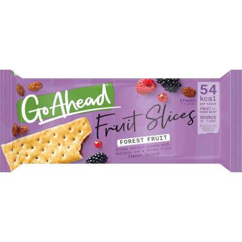 Crispy biscuit slices with sultanas and a forest fruit flavour filling
