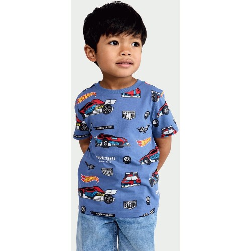 Hot Wheels Pure Cotton Racing Print T-Shirt in Blue
