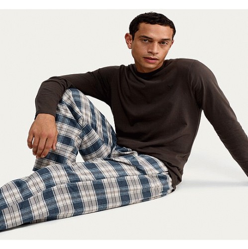 Pure Cotton Long Sleeved Top and Bottoms Pyjamas in Brown
