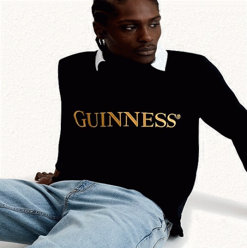 Guinness Pure Cotton Embroidered Slogan Long Sleeved Rugby Shirt in Black