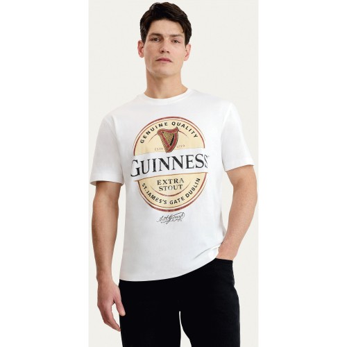 Guinness Extra Stout Print Pure Cotton T-Shirt in Cream
