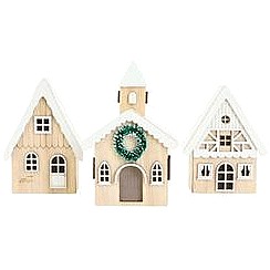 Light Up Wooden Cottage Set Christmas Decoration