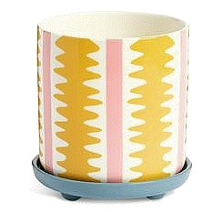 Stripe Ceramic Planter With Saucer Yellow