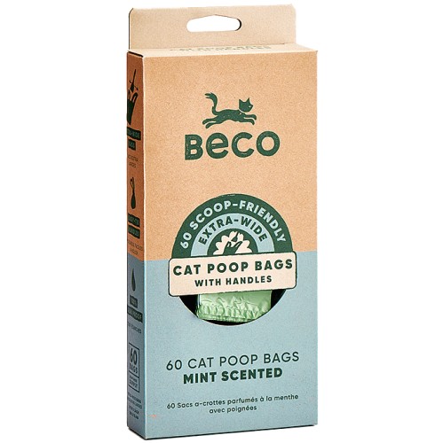 Beco Fresh Mint Scented Extra Wide Cat Poop Bags With Easy Tie Handles