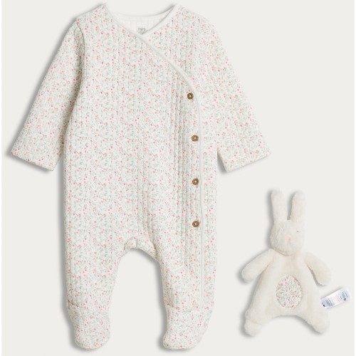 Pure Cotton Quilted Sleepsuit and Bunny Comforter in Pink