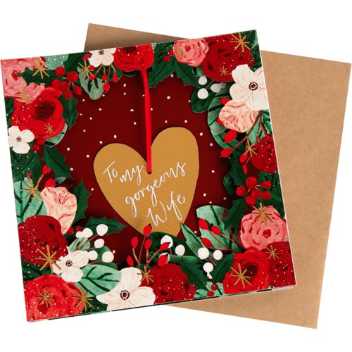 Gorgeous Wife Christmas Card Red Floral with Gold Heart Greeting Card