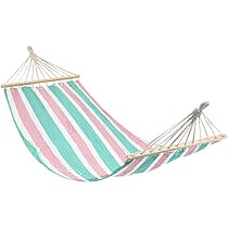 Cotton Garden Hammock with Spreader Bars Pink Green Stripe