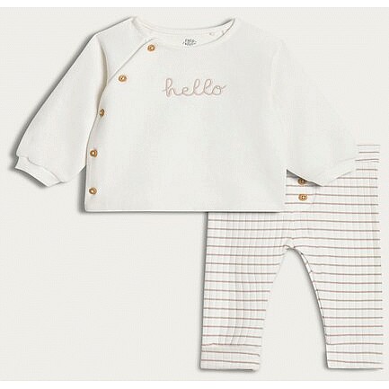 2-Piece Cotton Rich Hello Baby Jumper and Leggings Set in White