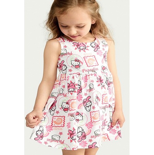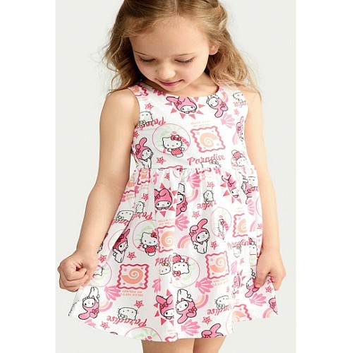 Hello Kitty and Friends Pure Cotton Sleeveless Dress in Multi White