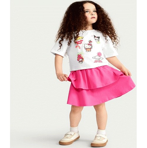 Hello Kitty and Friends 2-Piece Pure Cotton T-Shirt & Tiered Skirt Set in Multi White