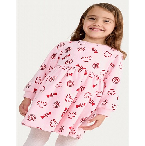 F&F Girls Cotton Rich Candy Print Sweat Dress in Pink
