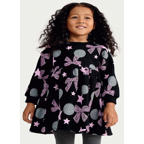 F&F Girls Cotton Rich Disco Ball Bow Print Dress in Black