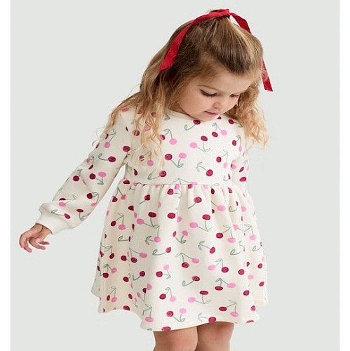 F&F Girls Cotton Rich Cherry Print Long Sleeved Sweater Dress in Cream
