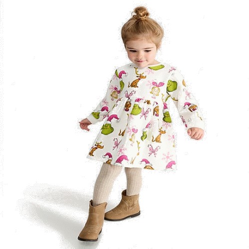 The Grinch and Cindy Lou Who Print Cotton Rich Sweater Dress in Cream