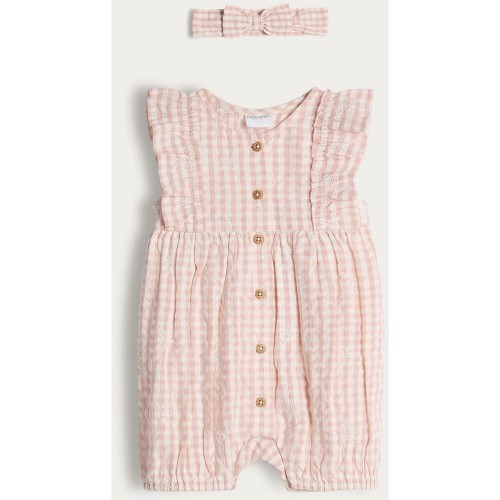 Gingham Romper and Headband Set in Pink