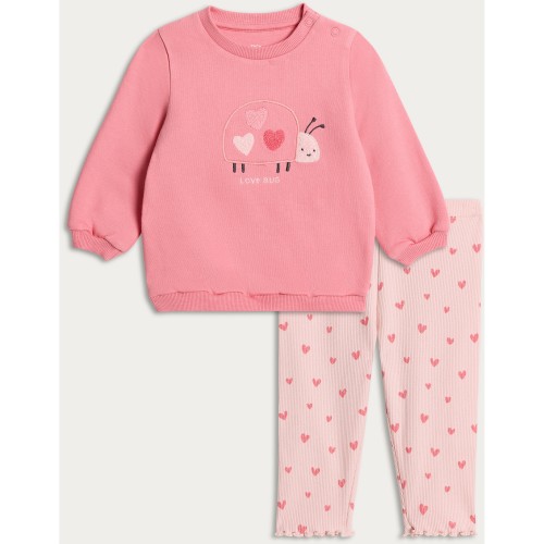 2-Piece Cotton Rich Love Bug Sweatshirt and Leggings in Pink