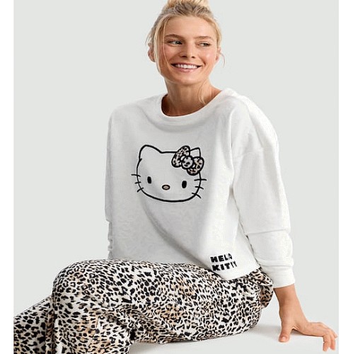Hello Kitty 2-Piece Leopard Print Fleece Pyjamas Set in Beige