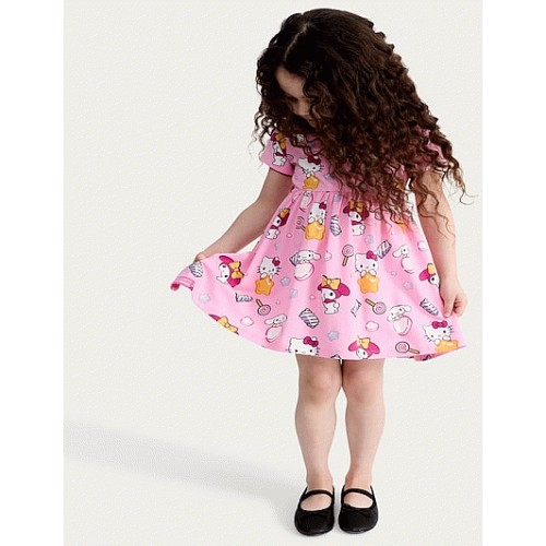 Hello Kitty Pure Cotton Short Sleeved Dress in Pink