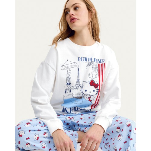 Hello Kitty Pure Cotton Sweatshirt Pyjama Set in Multi Blue