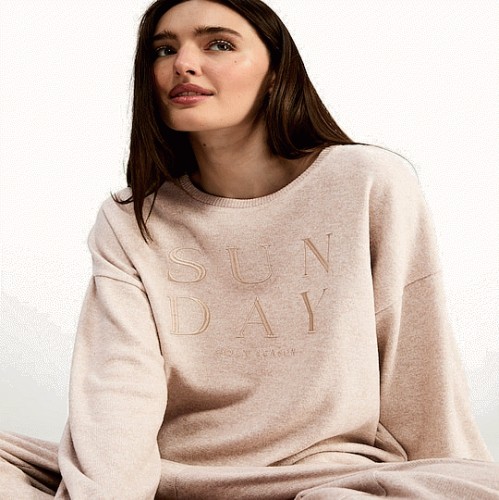 Snit Textured Sunday Lounge Pyjama Set in Beige