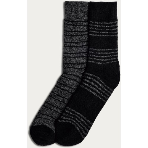 Hewitt & Munro 2-Pack Stripe Print Thermal Insulated Socks in Black