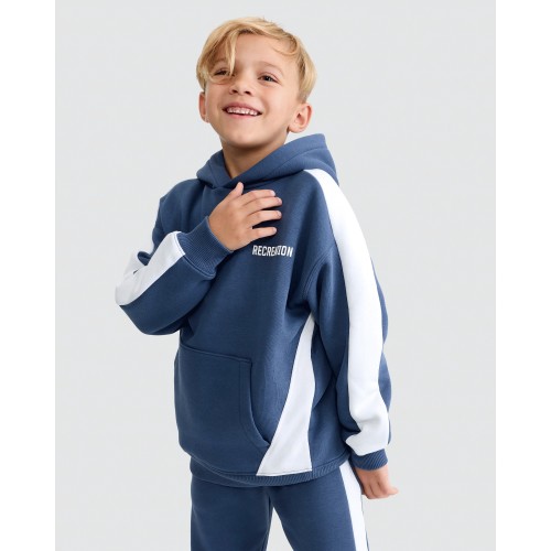 F&F Boys 2-Piece Cotton Rich Colour Block Hoodie and Joggers Set in Blue