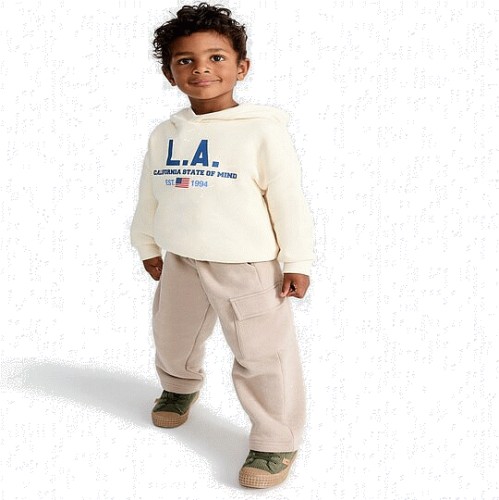 F&F Girls 2-Piece Cotton Rich Have a Nice Day Hoodie and Joggers in Natural