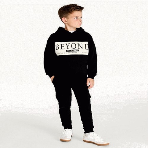 F&F Boys 2-Piece Cotton Rich Beyond All Limits Hoodie and Joggers Set in Black