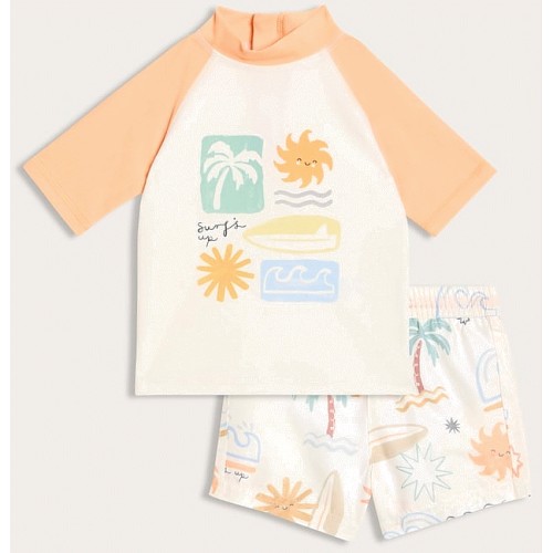 F&F Baby 2-Piece Surf Print Rash Vest and Swim Shorts Set in Orange