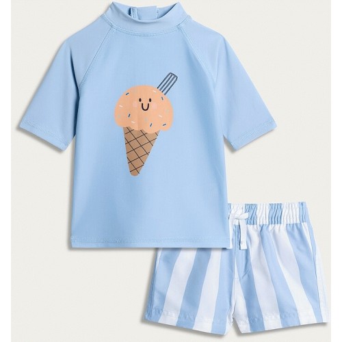 F&F Boys 2-Piece Summer Vacation Time Rash Vest and Swim Shorts Set in Multi