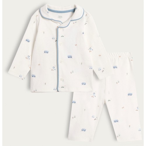 Hot Wheels Pure Cotton Printed Pyjama Set in White Multi