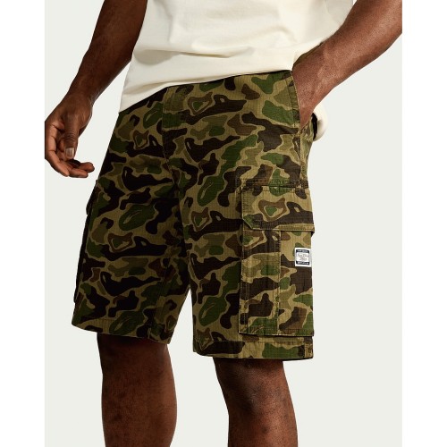 RDA Cotton Rich Camouflage Print Cargo Shorts in Green