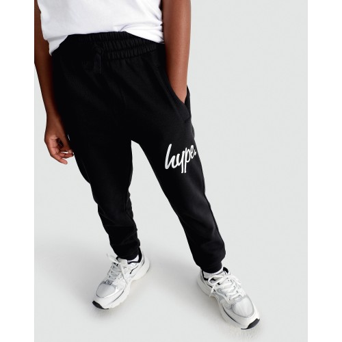 Hype Cotton Rich Slogan Cuffed Joggers in Black