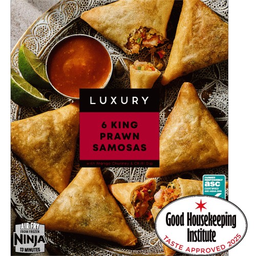 Luxury 6 King Prawn Samosas with Mango Chutney & Chilli Dip