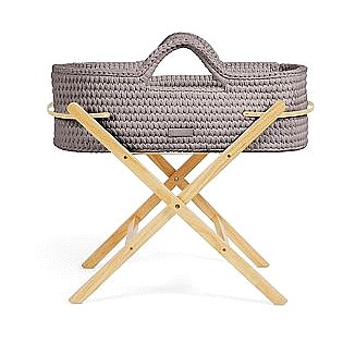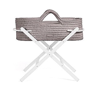 White Dimple Grey Wicker Moses Basket with Rocking Stand