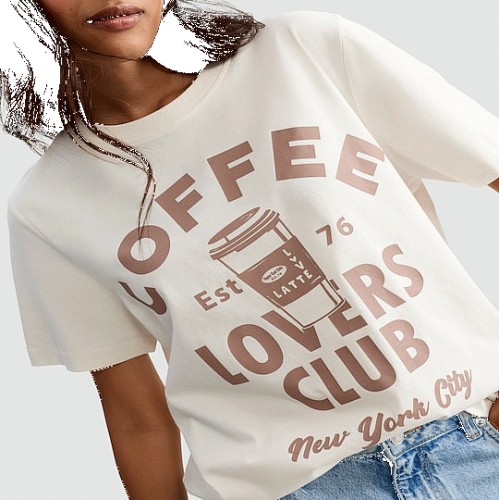 Pure Cotton Coffee Lovers Club Print T-Shirt in Cream