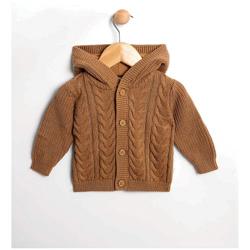 Cable knit hooded cardigan with jersey lining 6 9 Months