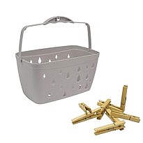 Plastic Peg Basket Grey with 24 Wooden Retro Pegs Brown